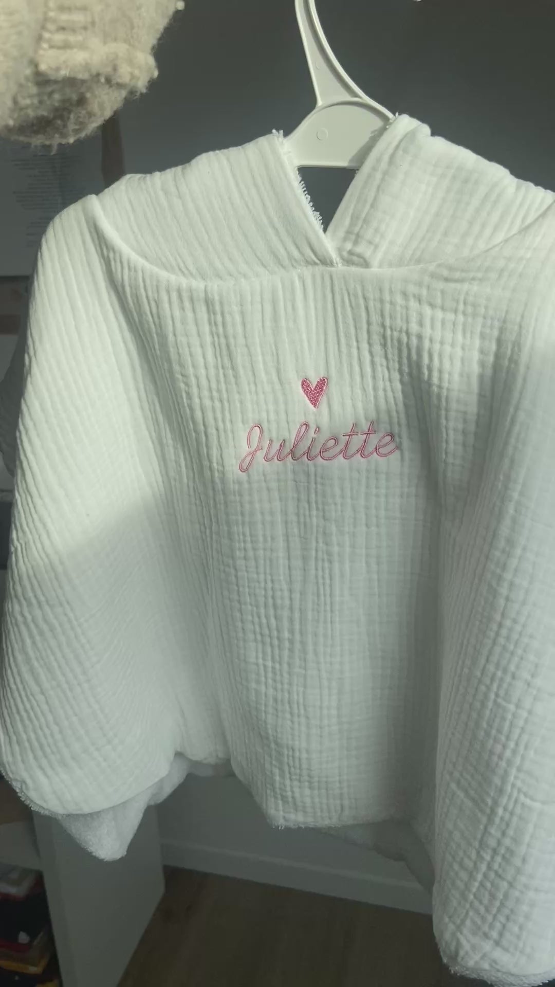 Poncho de bain Maison Ange : intérieur en éponge absorbante, capuche à oreilles de lapin, parfait pour rester bien au chaud.